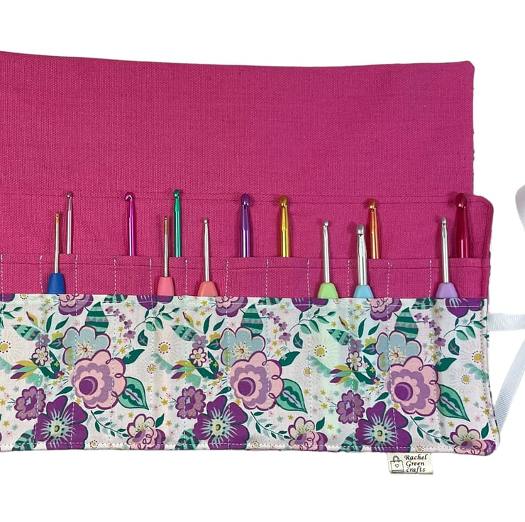 This handy case holds up to 28 crochet hooks and will fit most ergonomic hooks in either the upper or lower pocket with the alternative working for the thinner metal style as I have demonstrated. Hooks up to 15cm (6") in length will comfortably fit. Would also work well for smaller diameter, shorter DPN.