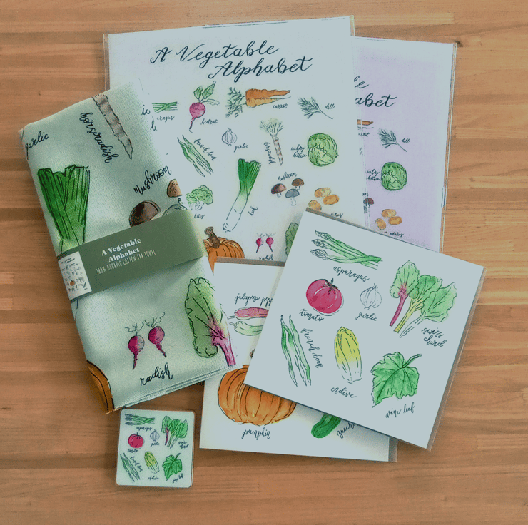Part of my 'Eat Your Veg' collection, which includes an A4 art print, a 100% organic cotton tea towel, x4 square note cards and a fridge magnet.