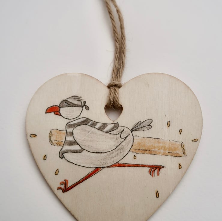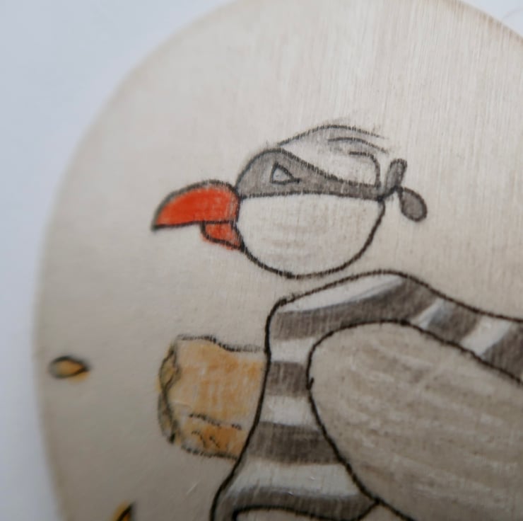 This fun 10x10cm picture is a humorous look at the British Seagull who has a fearsome reputation as a chip thief has been drawn by me and is a one-off.