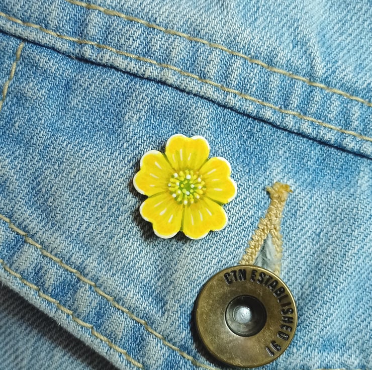 In the language of flowers, the buttercup is a symbol of happiness and friendship, so this beautifully painted flower pin would make a great gift for a best friend or to cheer someone up!