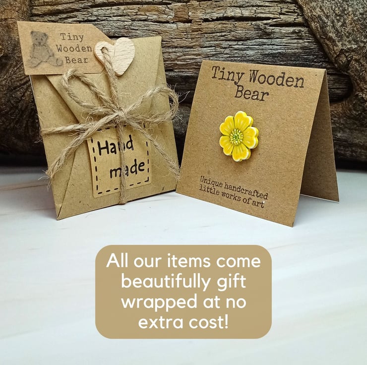 This flower pin is totally unique - designed, hand crafted and hand painted by an artist. It’s small and highly detailed - you can see the brushstrokes of the artist who has signed it on the back. Each purchase is individually gift wrapped and beautifully presented using plastic-free packaging (100% recyclable)
