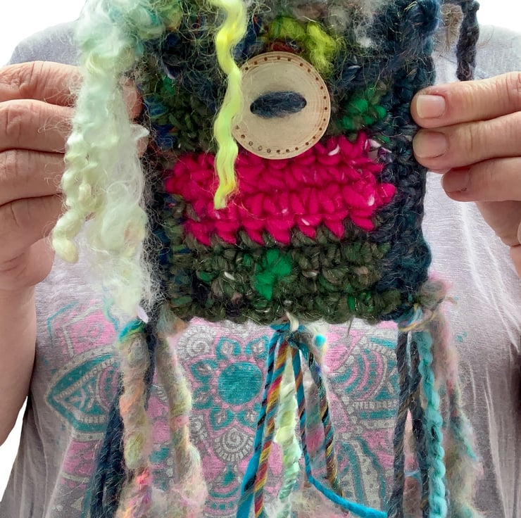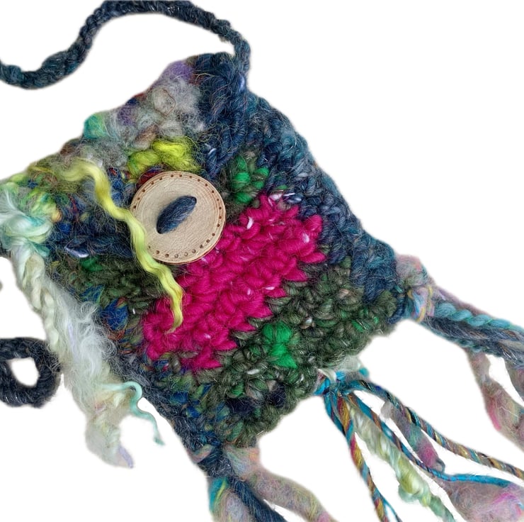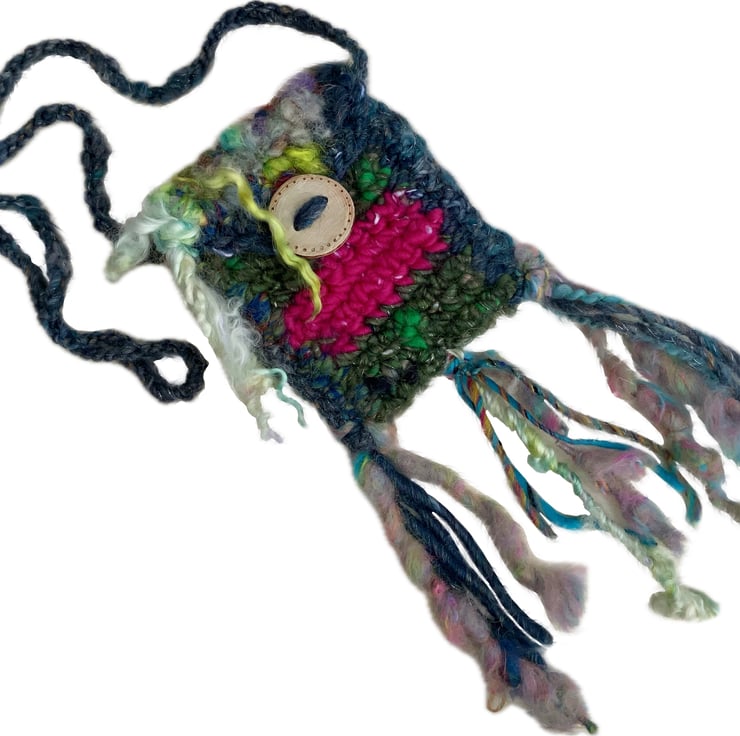A Native American medicine bag (festival bag or pixie purse) made from hand spun art yarn.