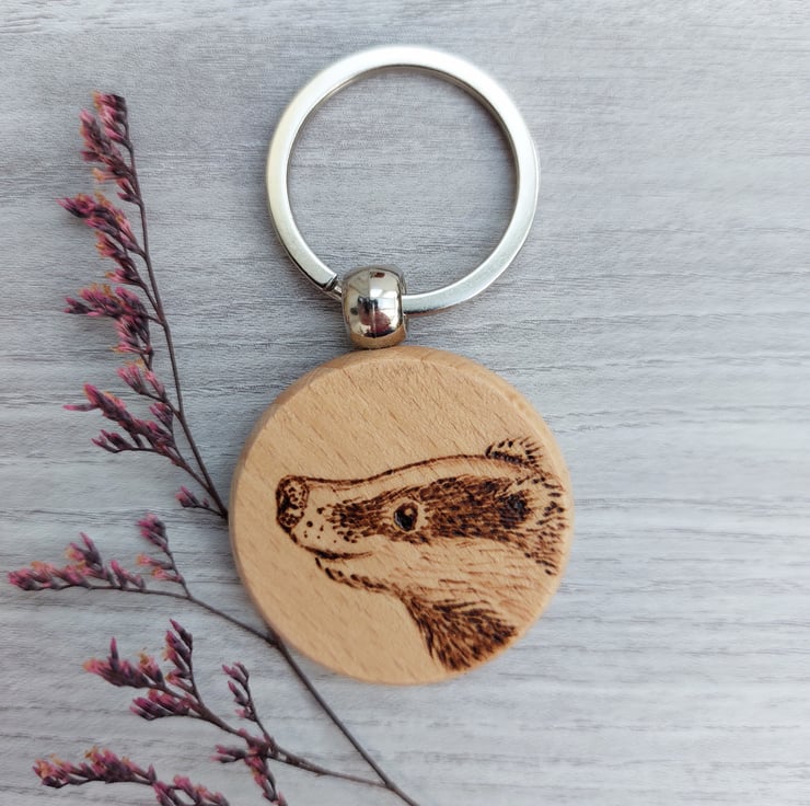 This badger keyring is made by hand, burning the design using a pyrography tool. I make all my keyrings by sketching directly onto the wood and then burning the design, so they're all unique in their own way. This is handmade and not laser engraved. I finish each piece with a couple of coats of satin varnish to protect the design.