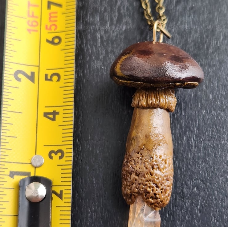 The mushroom itself measures approximately 2.2 inches tall ( approximately 6cm) l, top to bottom( as pictured)