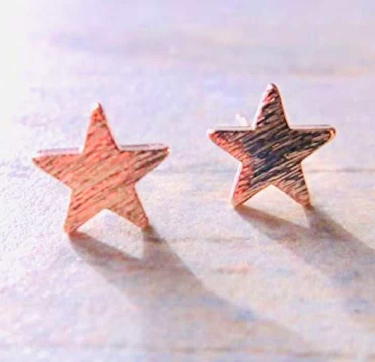 One pair of silver plated brass stud earrings and one pair of rose gold plated brass stud earrings. Both pairs come in this listing. Each in their own organza pouch. Limited edition.8mm in size with pushbacks.