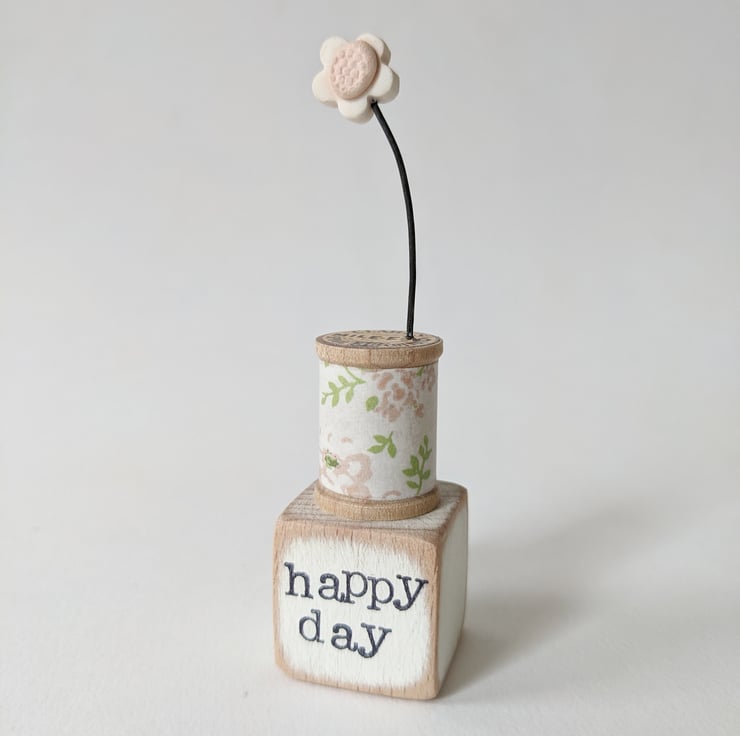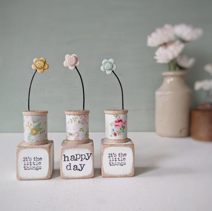 I love these teeny wooden bobbins! The tiny flower is perfect on top.
