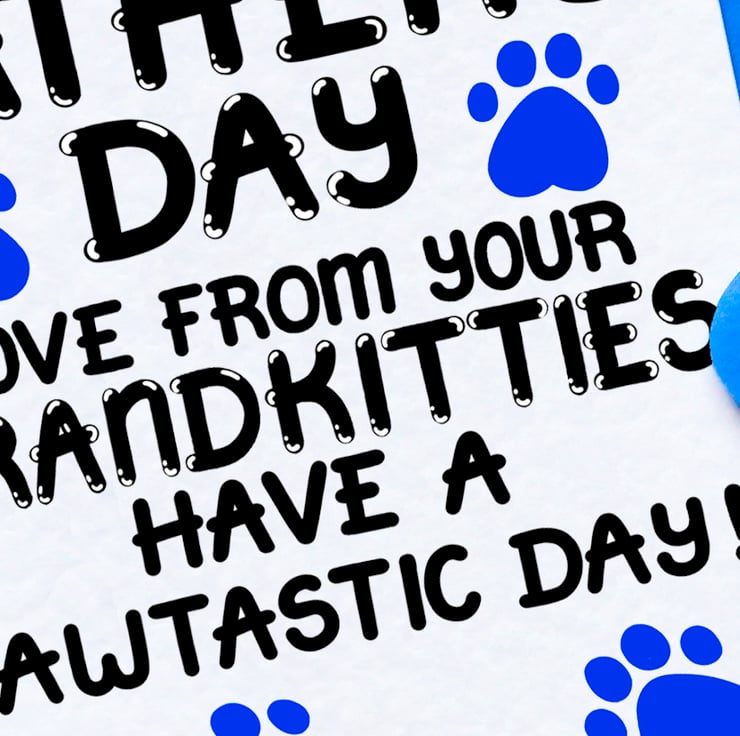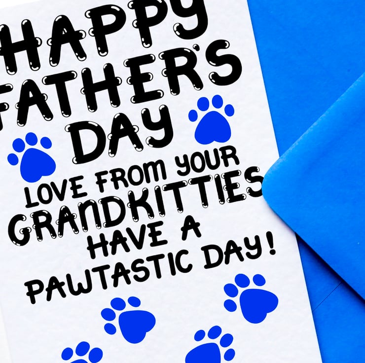 Greeting on front: HAPPY FATHER'S DAY LOVE FROM YOUR GRANDKITTIES HAVE A PAWTASTIC DAY!