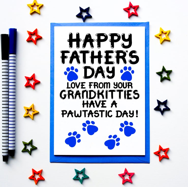 Father's Day Card For Grandad From Grandkitties, Fathers Day Card From Cats, Pet