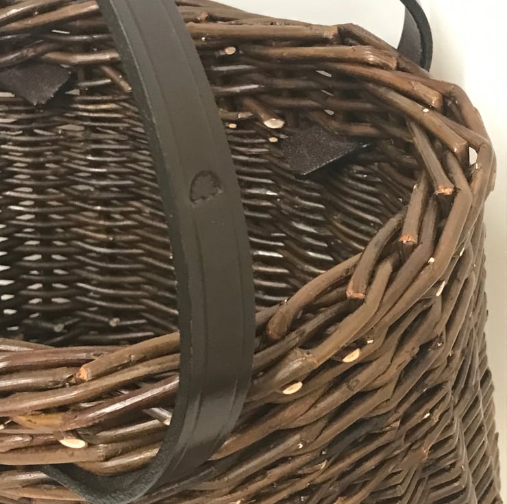 One day Becs appeared at my regular market stand at a Makers Market in Tavistock. Becs is a leather worker and asked if I would be interested in having leather handles on some of my baskets.. Such a simple question but one which gave my inspiration and skill challenges such a boost. We have now been collaborating since 2021 and we are both loving it.