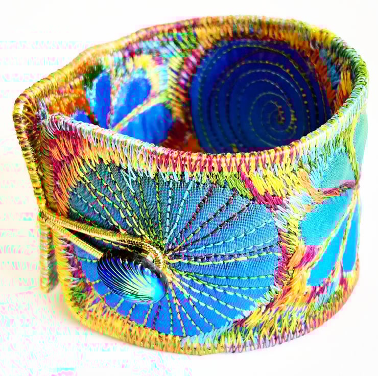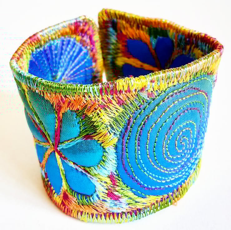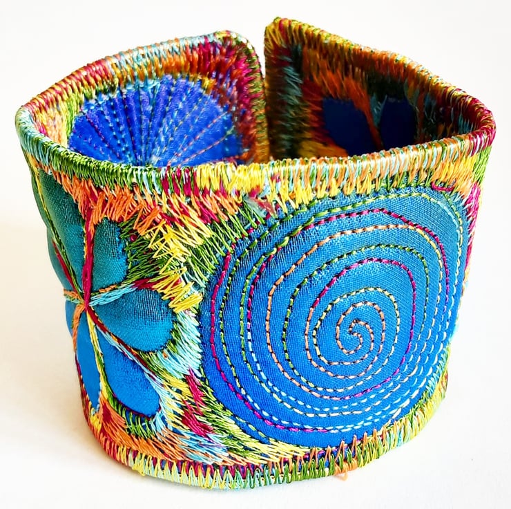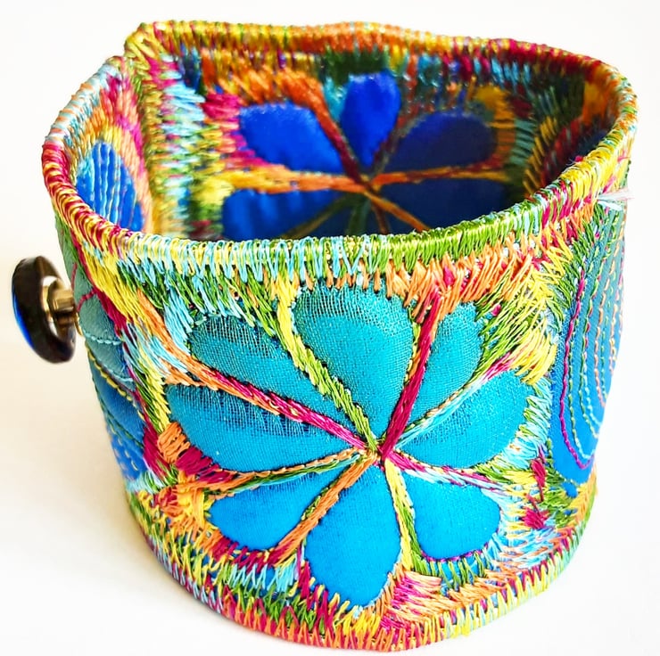 This is a handmade machine stitched fabric Stiched Silk Cuff or bracelet.