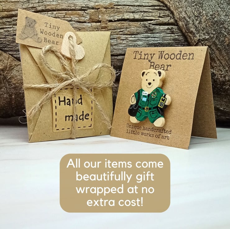 This bear pin is totally unique - designed, hand crafted and hand painted by an artist. It’s small and highly detailed - you can see the brushstrokes of the artist who has signed it on the back. Each purchase is individually gift wrapped and beautifully presented using plastic-free packaging (100% recyclable)