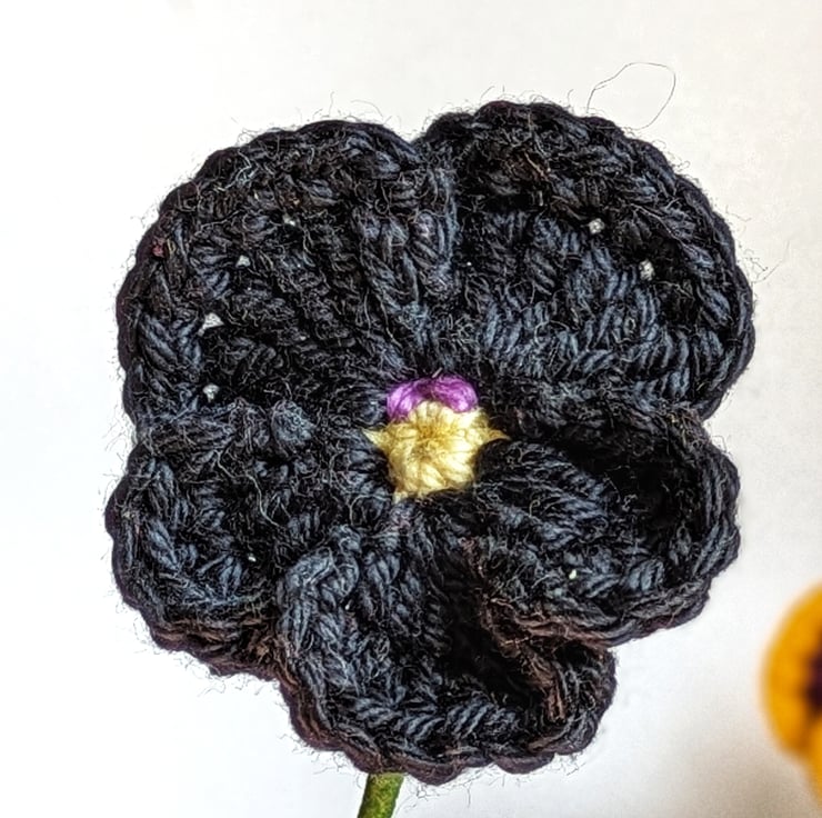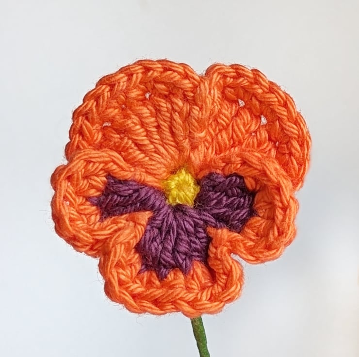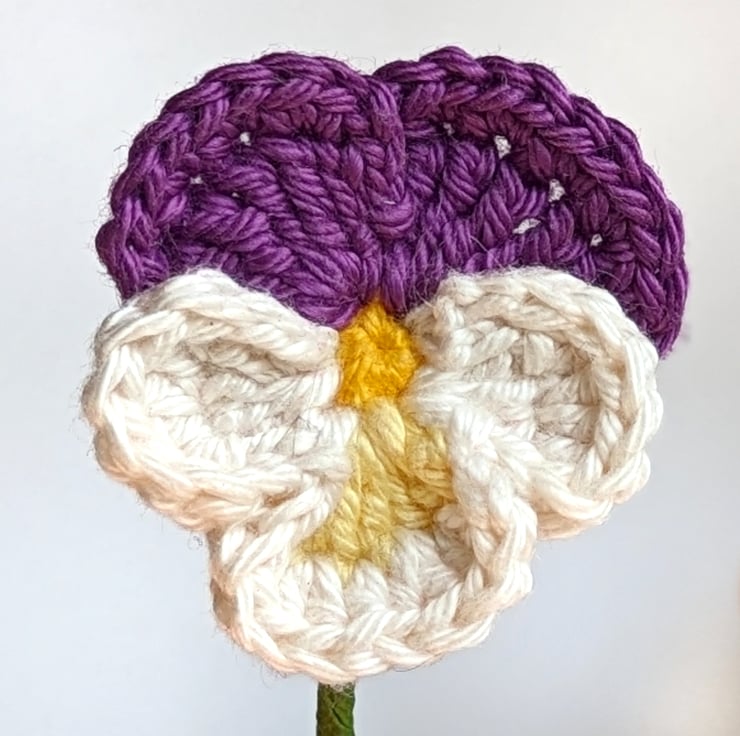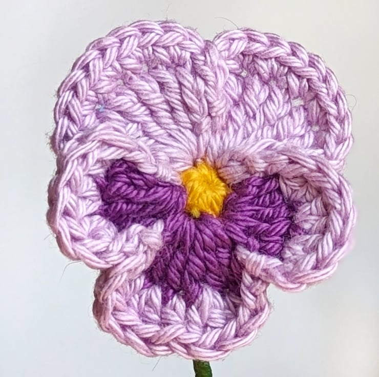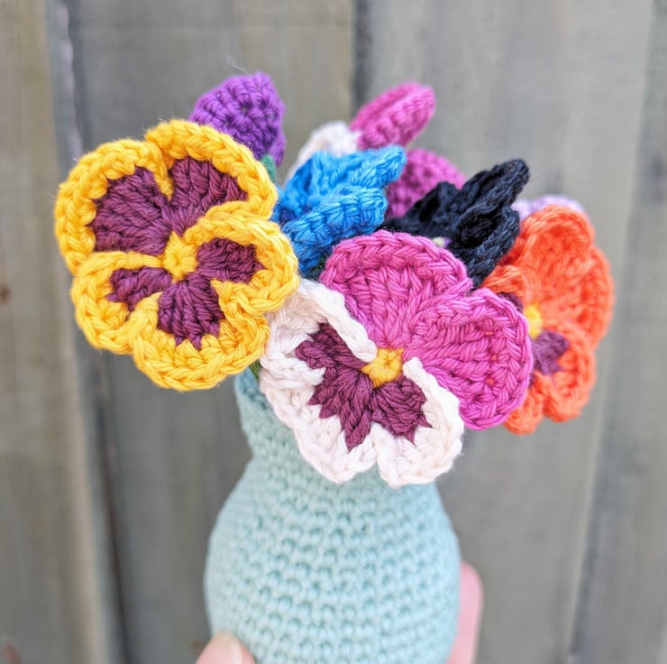 Crocheted pansies - made with vibrant, colourful mercerised cotton yarn which gives a beautiful finish and stitch definition.