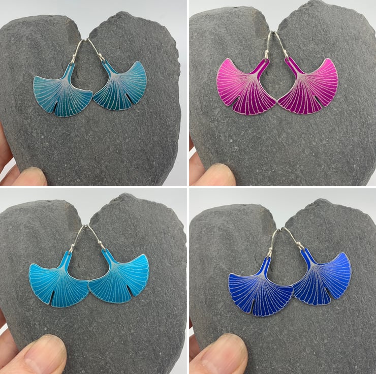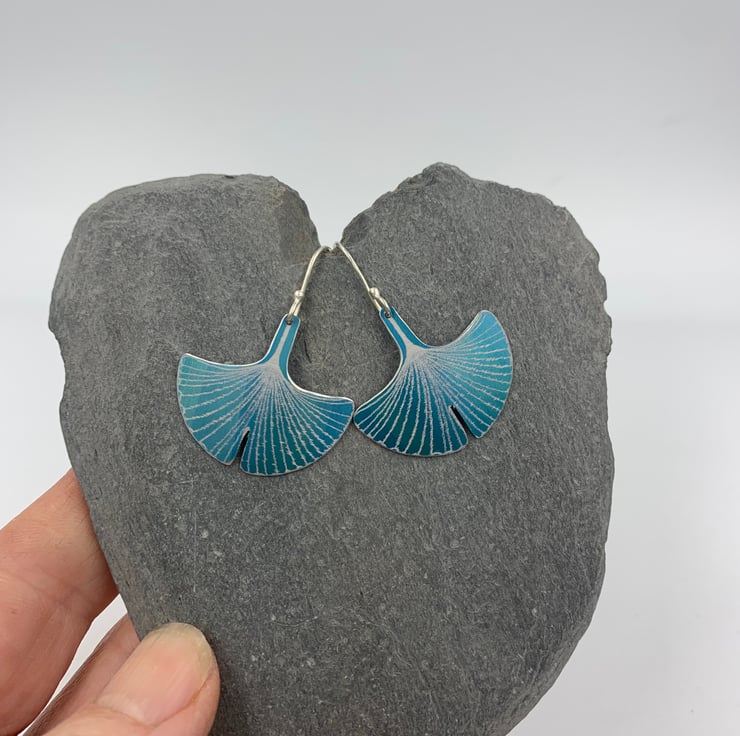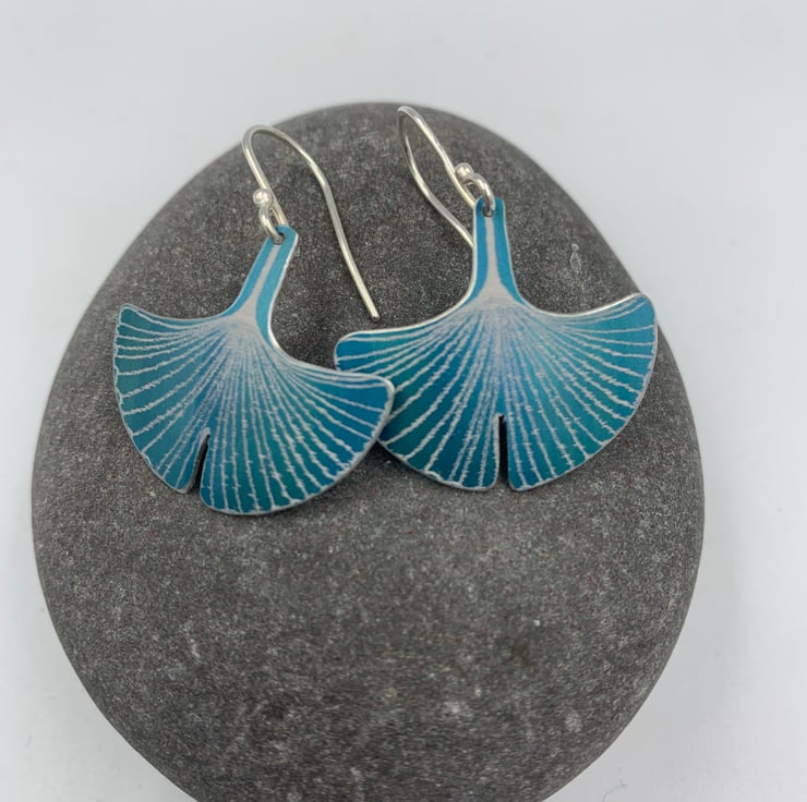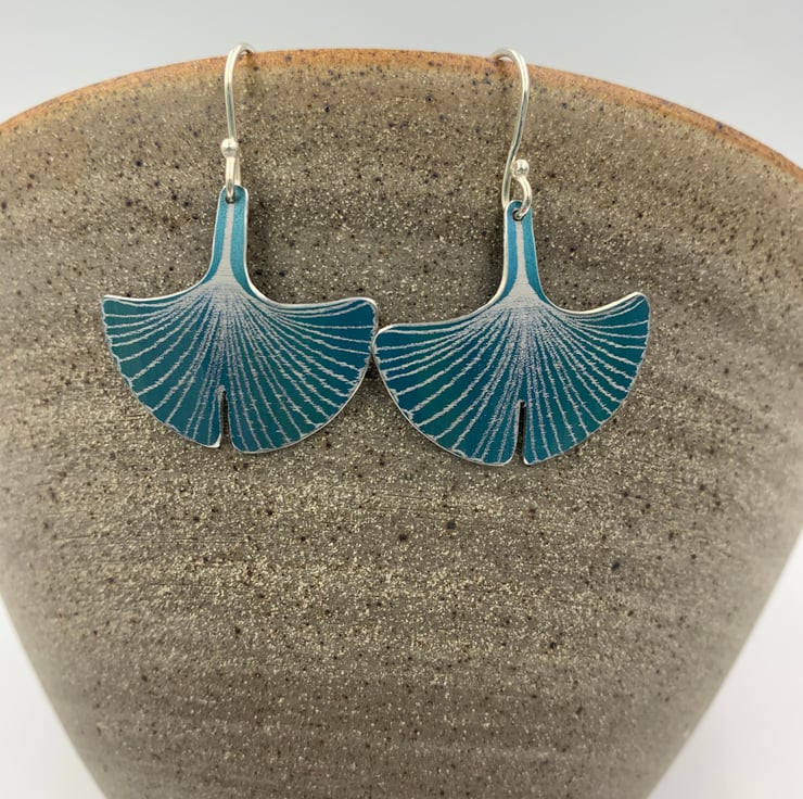 Who doesn’t love a ginkgo leaf? These lightweight anodised aluminium earrings have been etched with my hand drawn ginkgo leaf design. They have been dyed a stunning teal and hang from handmade sterling silver ear hooks.