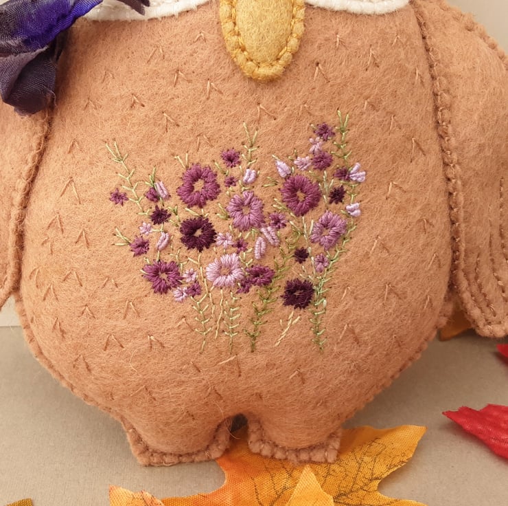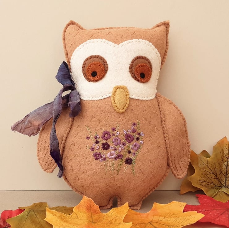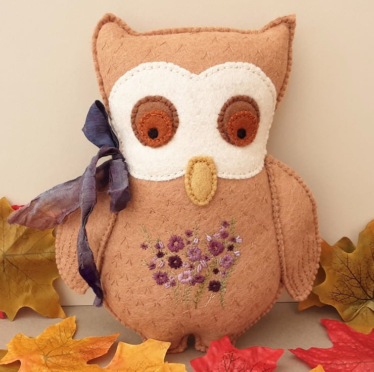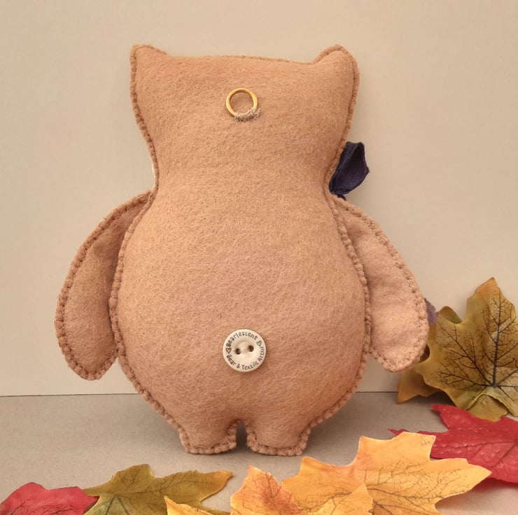 This Owl stands at approx 7.5" tall and has been hand sewn from wool felt in fawn.