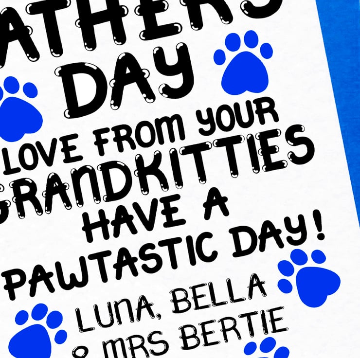 Greeting on front: HAPPY FATHER'S DAY LOVE FROM YOUR GRANDKITTIES HAVE A PAWTASTIC DAY! (NAMES)