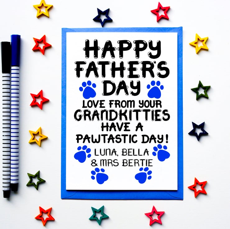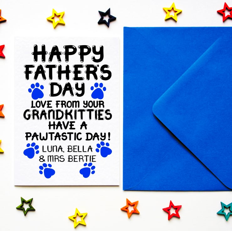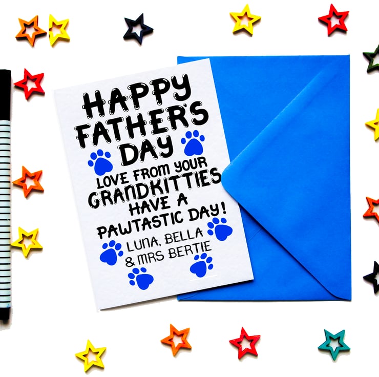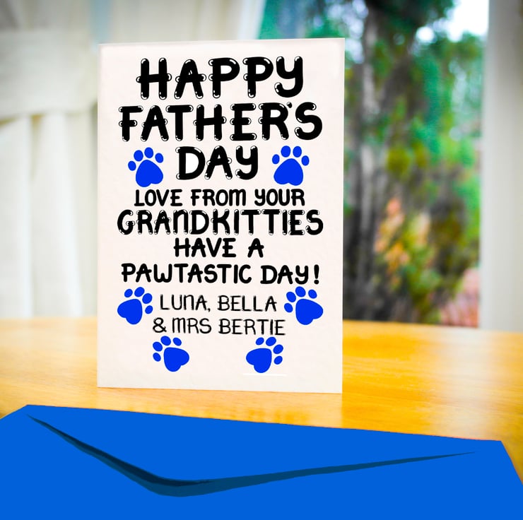 Personalised Father's Day Card For Grandad From Grandkitties, Cats, Kittens. Pet