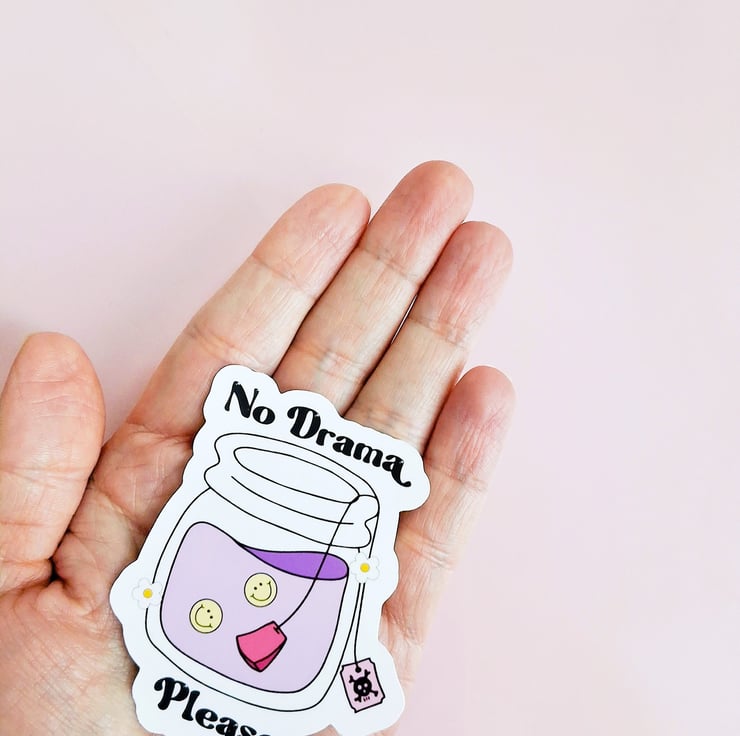 Add a touch of humor to your home or office space with this "No Drama Please" sticker. Perfect for journaling, decorating notebooks or laptops, and adding a fun touch to your coffee mug.