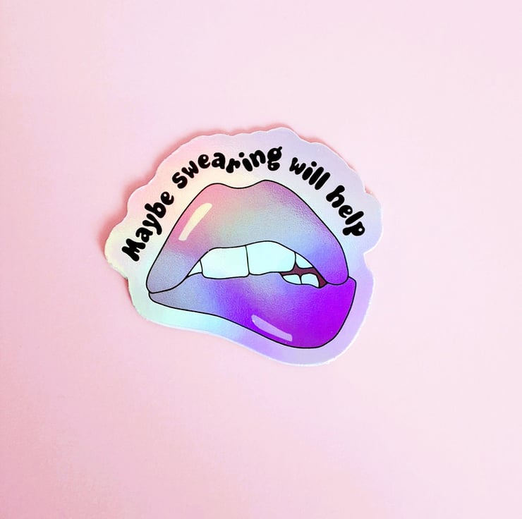 The "Maybe Swearing Will Help" lip biting sticker is the perfect addition to your water bottle or laptop for a bit of humour.