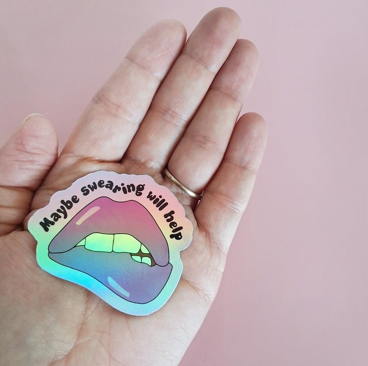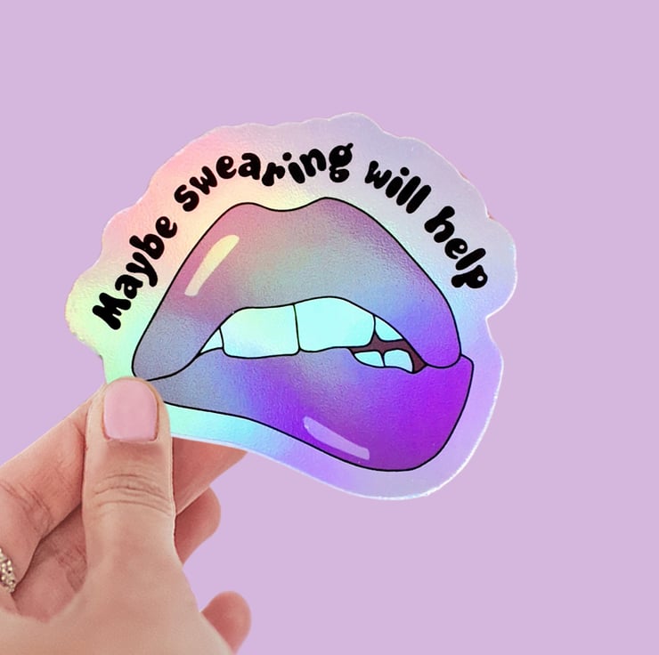 Add some colour and personality to your office supplies with our holographic rainbow shine sticker and "Maybe Swearing Will Help" lip biting sticker!