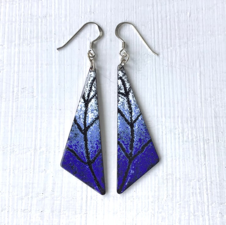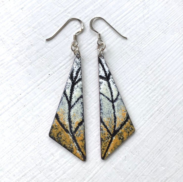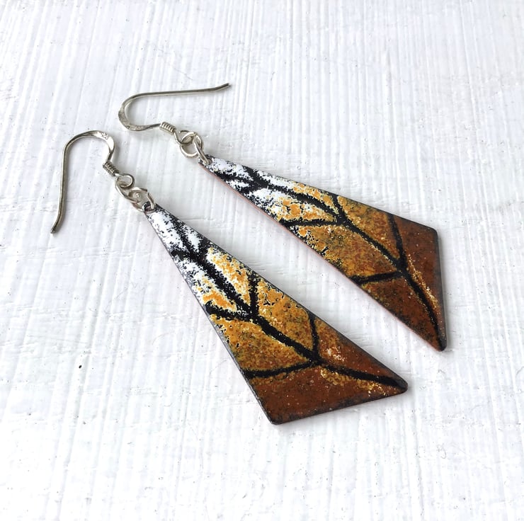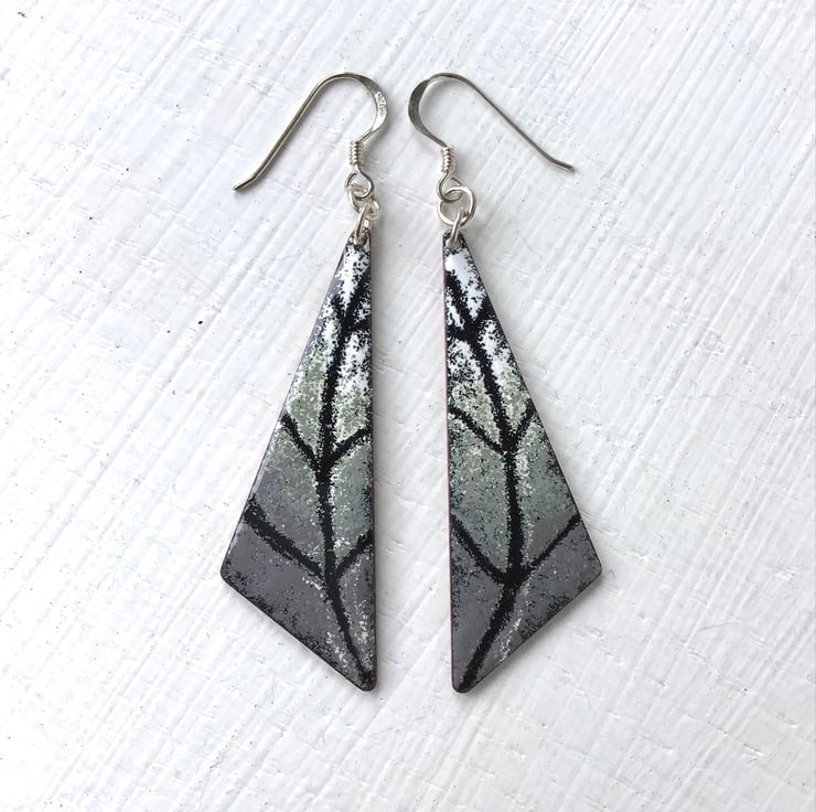 Long Triangle Enamelled Earrings - Leaf Vein Effect