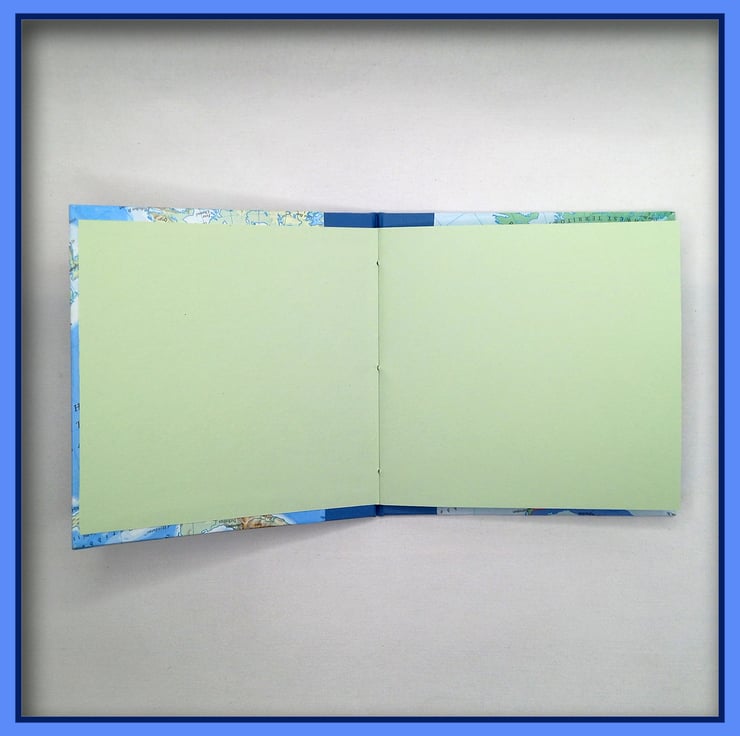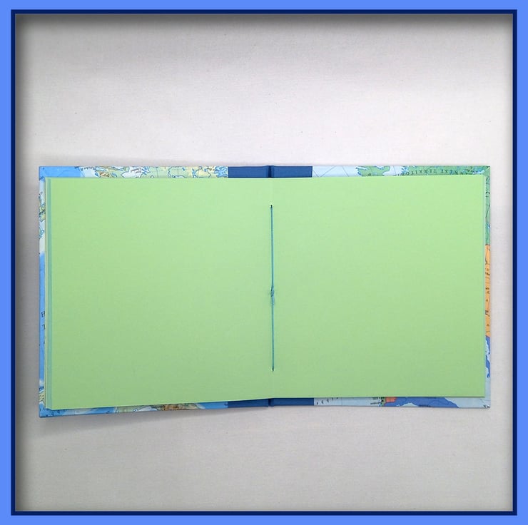 I have used pastle green paper inside for the end papers, all of which have been hand sticthed with blue linen thread