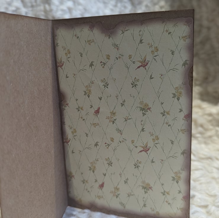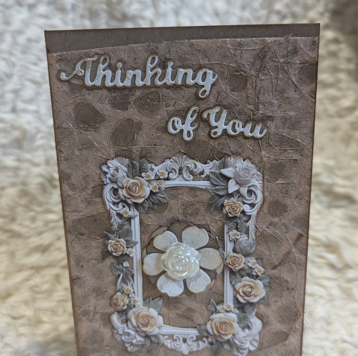Kraft card stock overlaid with fancy delicate light brown coloured paper with 'Thinking of You' die cut