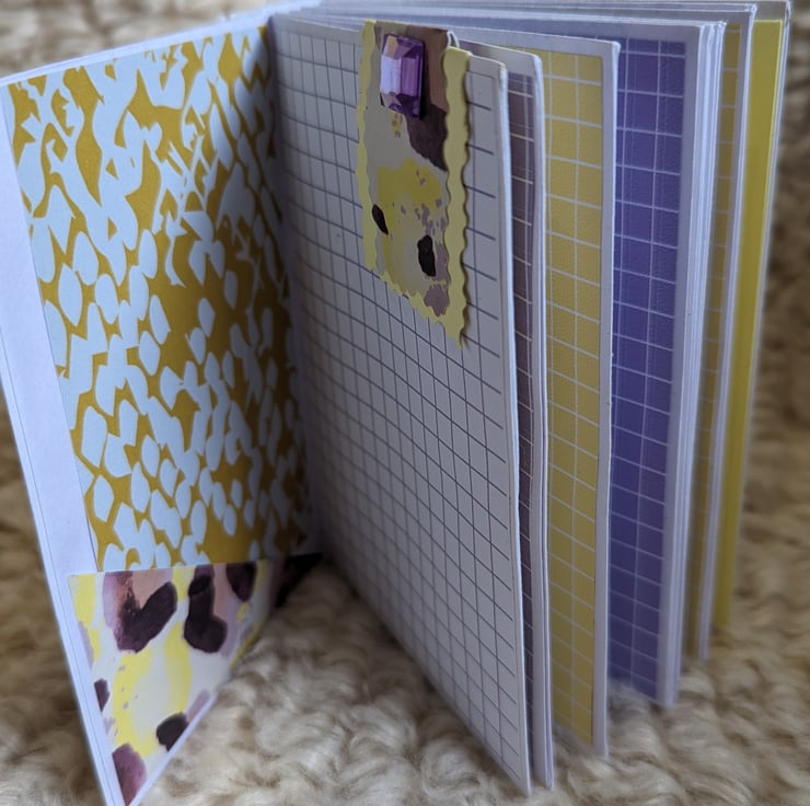 Extras - hidden paper clip, journal card and a flip up journalling space at the back
