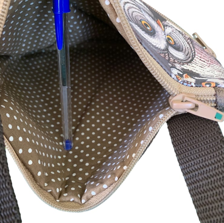 Beautiful slim crossbody bag with 2 zip pockets made from water resistant and vegan friendly faux leather. The lining fabric is 100% cotton.