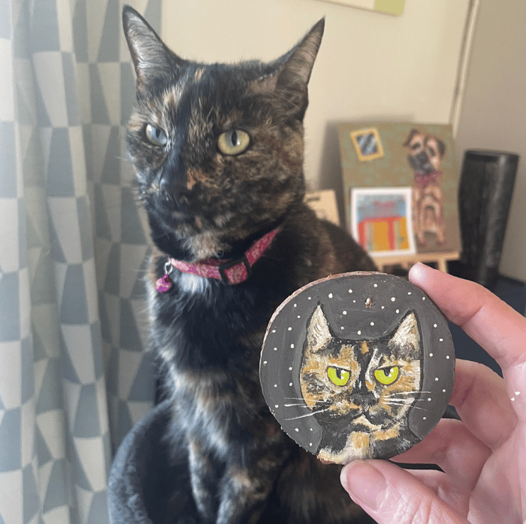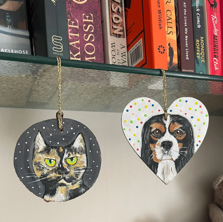 Let me paint your pet on a bauble shape of your choice. A stylised representation of your pet with its unique markings and colours.