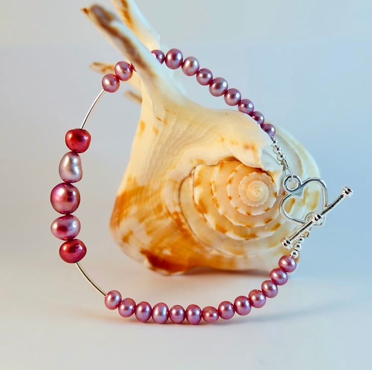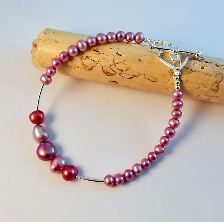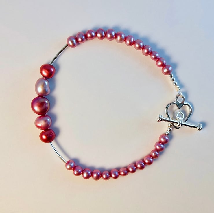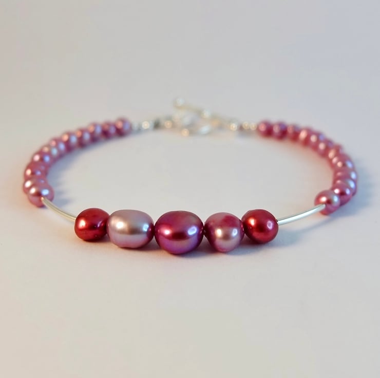 Dainty Freshwater Pearl bracelet in delicate shades of pink and mauve.