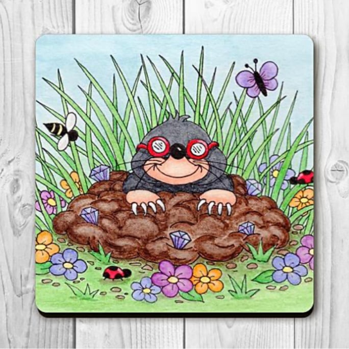 x1 Mole In A Hole Hardboard (cork base) Mug Coaster
