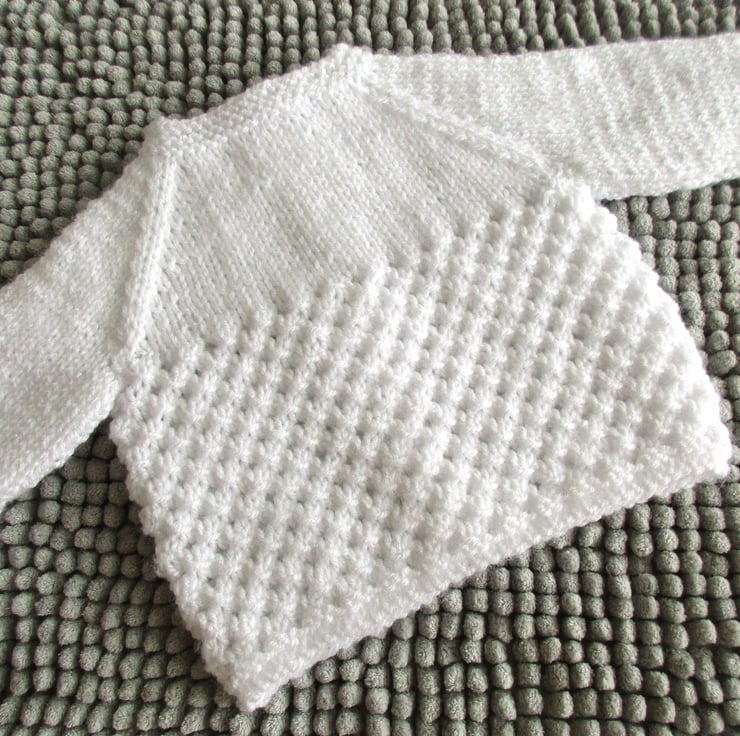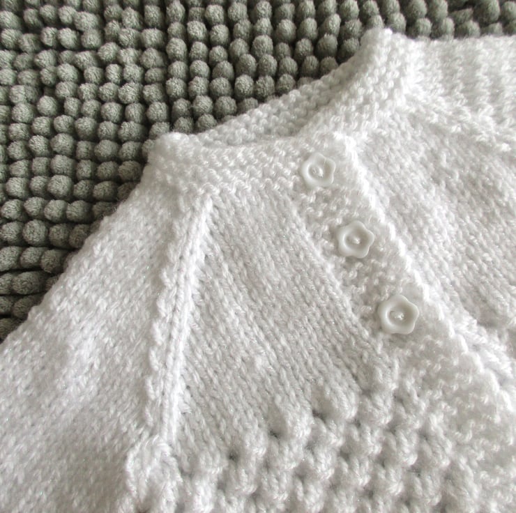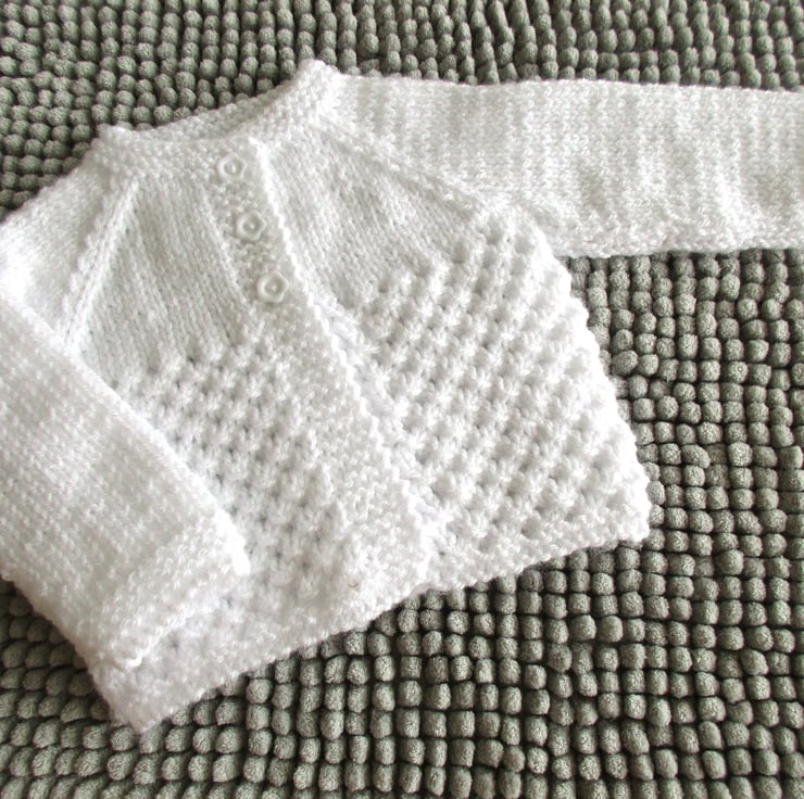 Baby Cardigan with Patterned Lower Body Stocking Stitch Upper Body
