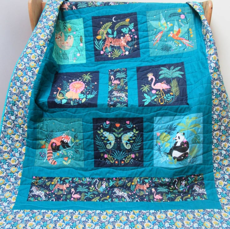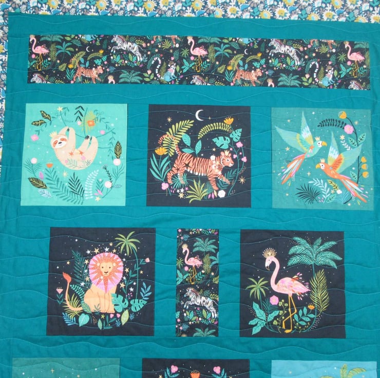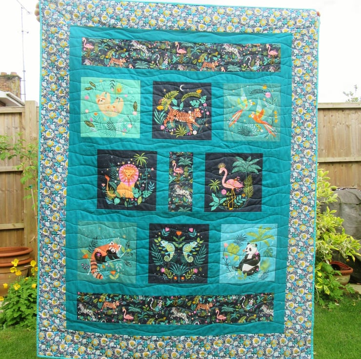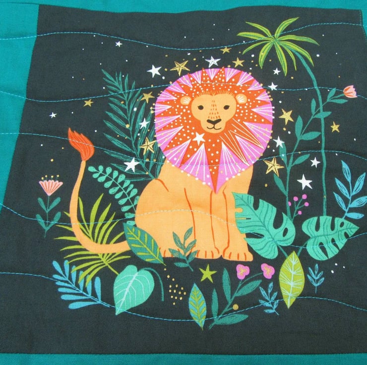 All the fabrics are pure cotton including the distinctive backing fabric that I chose to be in keeping with the jungle theme.