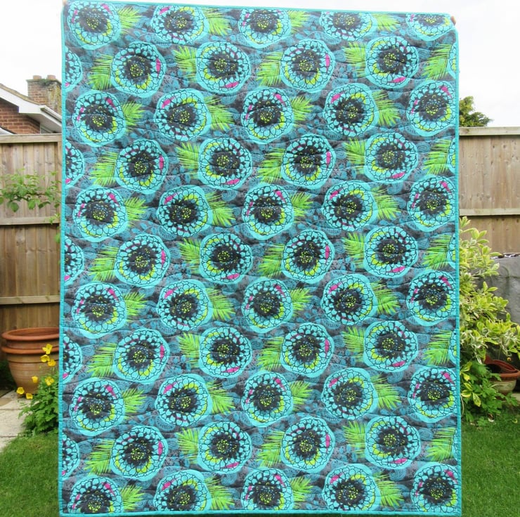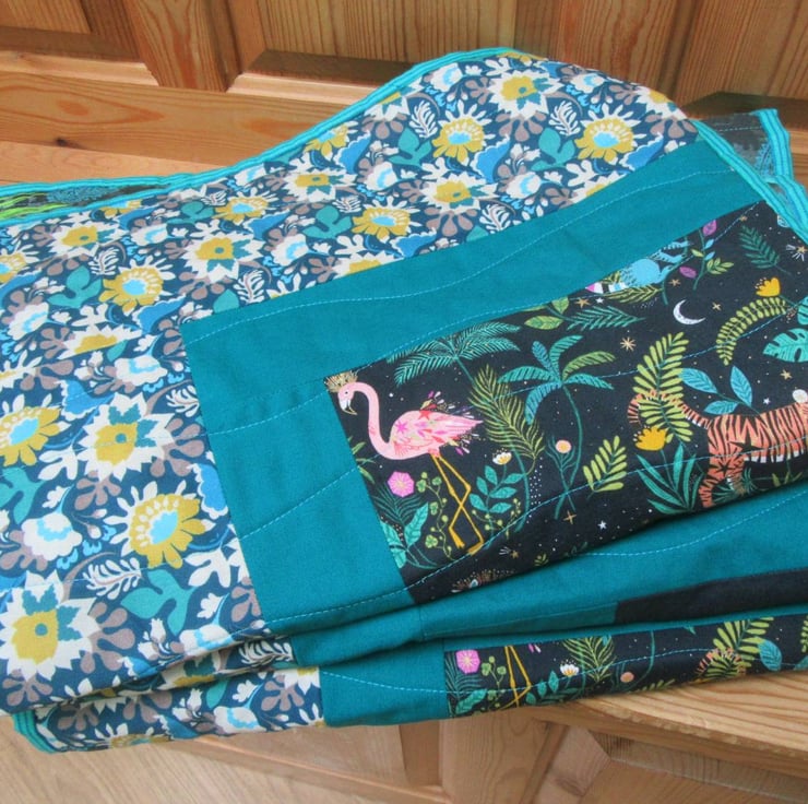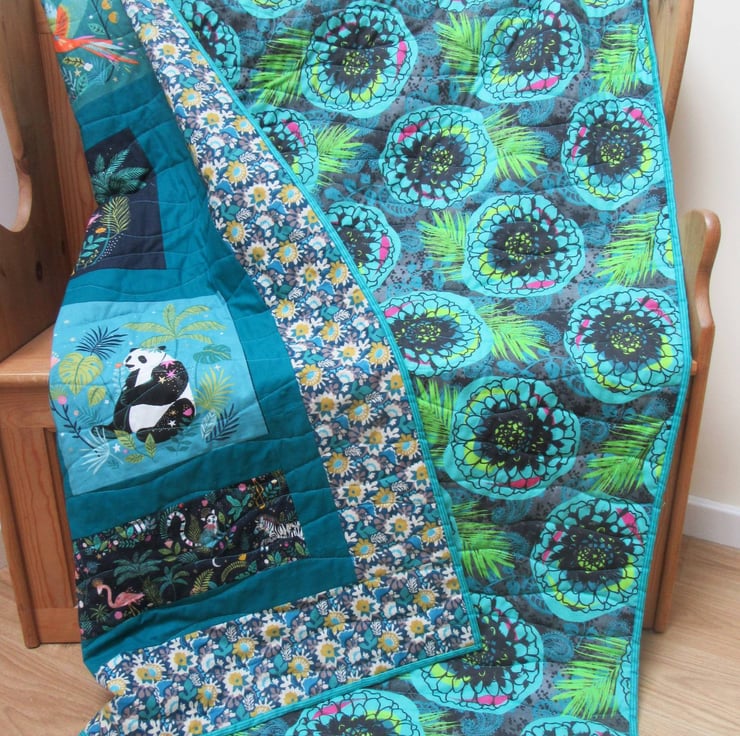 I've used the stunning fabric prints by Bethan Janine from her beautiful collection called 'Jungle Luxe' to create a patchwork quilt that looks at home on a bed, a sofa or hanging on a feature wall.
