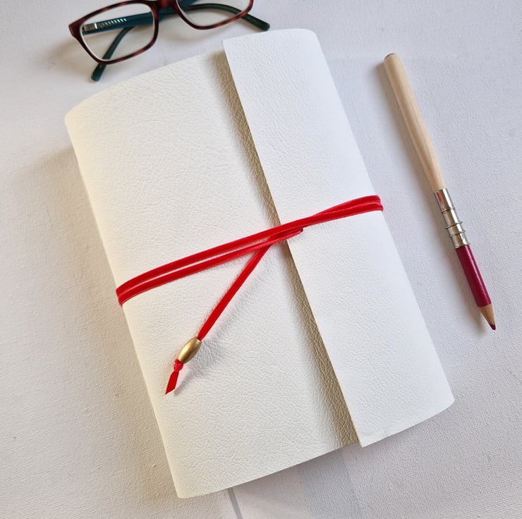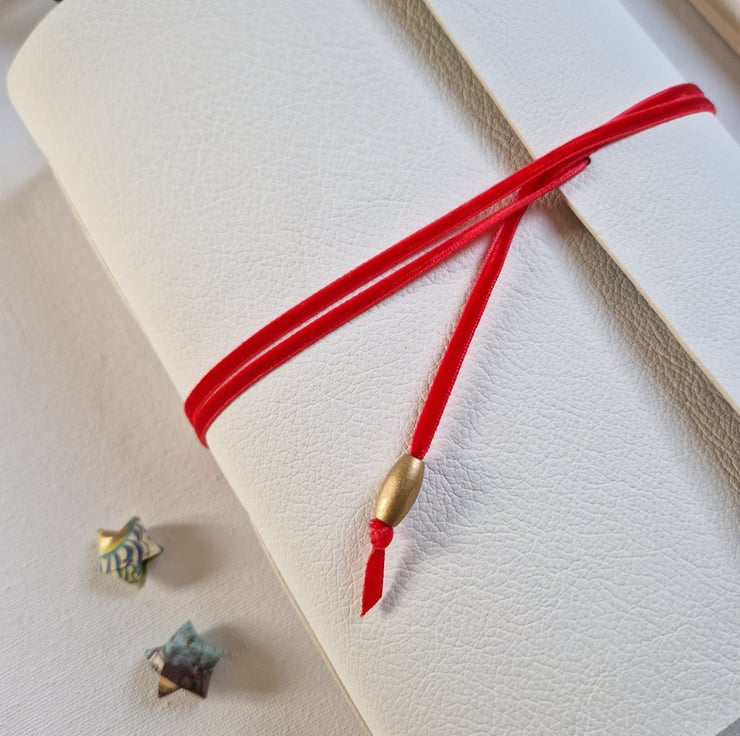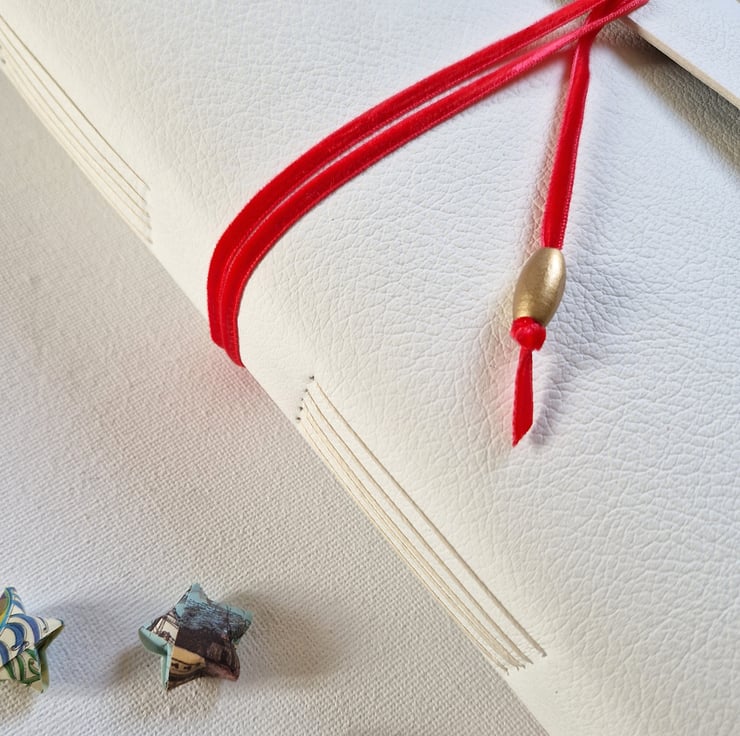 The Journal lies completely flat when in use and has a handy Ribbon Page Marker. A Refill Kit can be bought from my shop too.