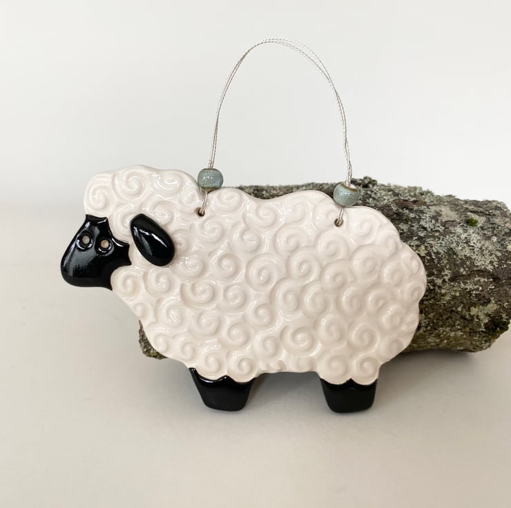 Ceramic sheep hanging decoration black and white