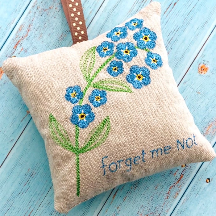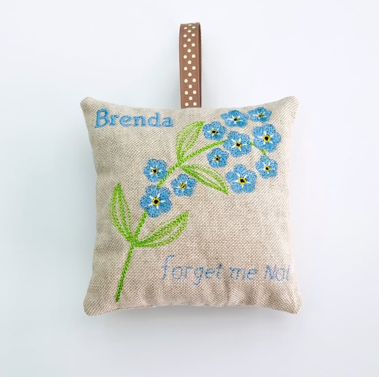 A Beautiful Machine Embroidered Forget Me Not Lavender Bag.