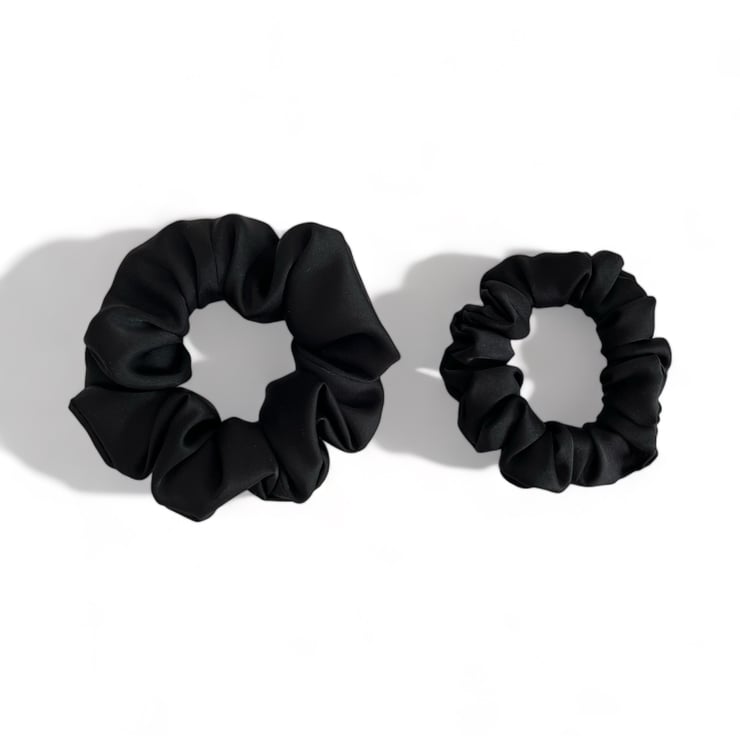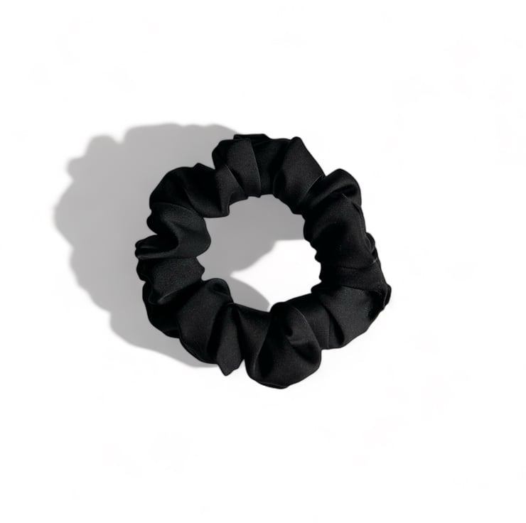The scrunchie size is regular. The second photo shows the size difference against the “large” size and is for reference purposes only.
