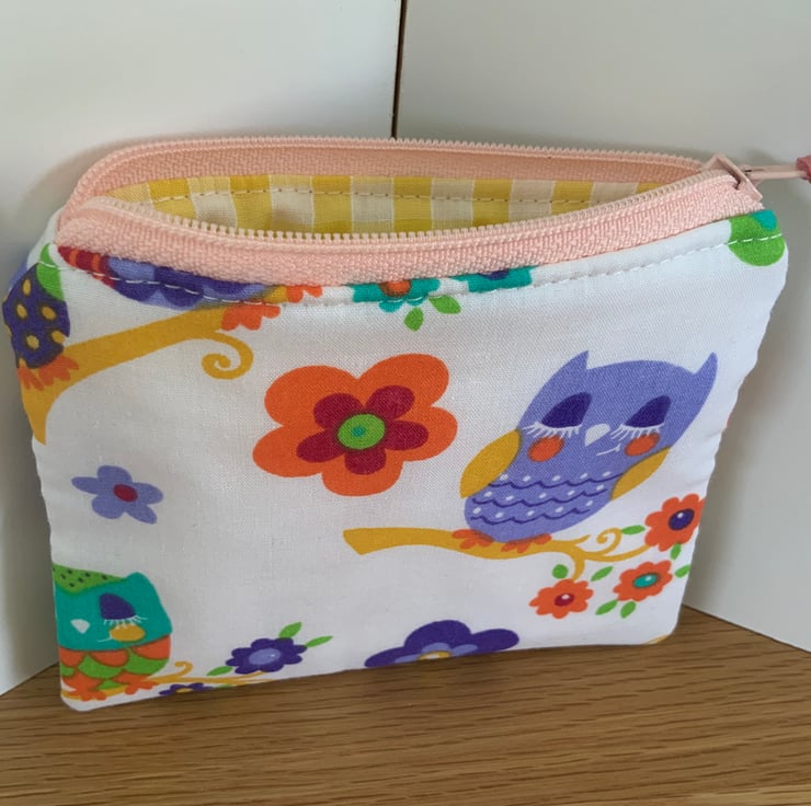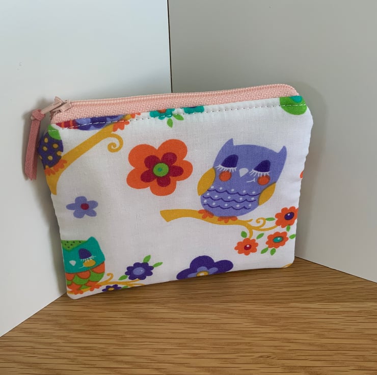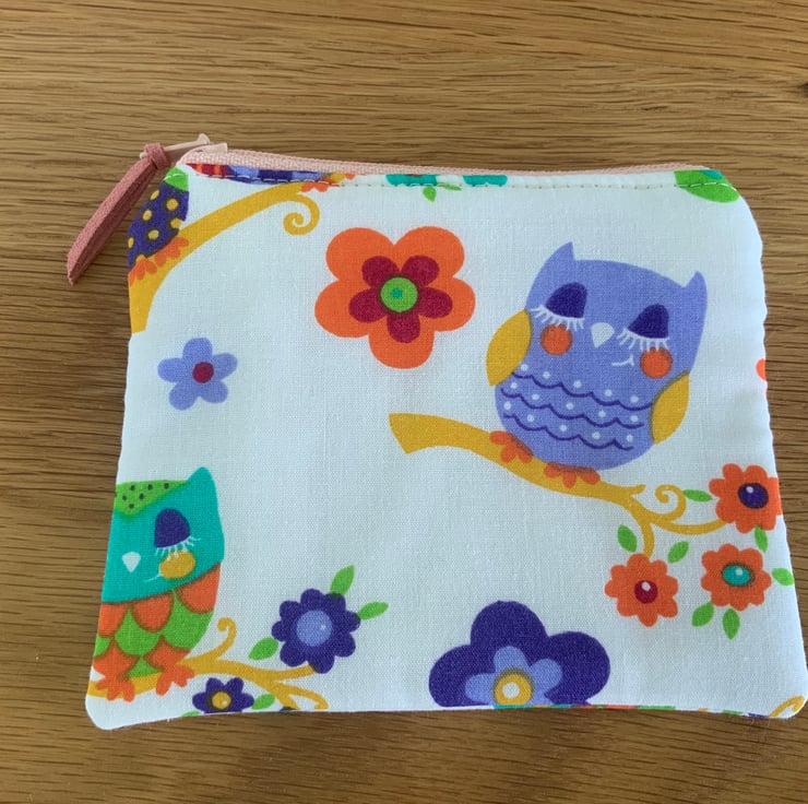 Fabric Coin Purse, Money Pouch, Zipped Purse, Purse, Card Holder, Owl