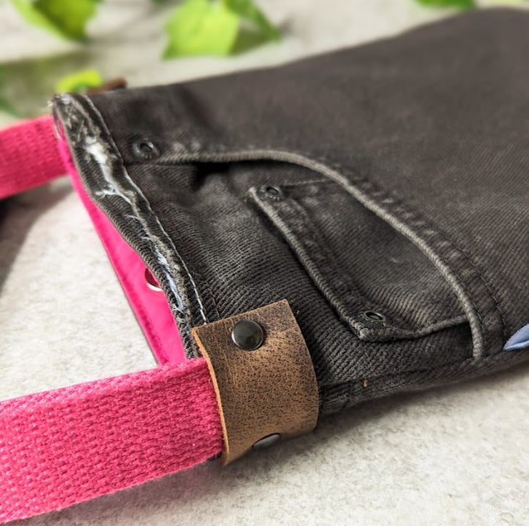 It has a hard-wearing vibrant pink polycotton lining with an adjustable vibrant pink webbing strap which is adjustable to 152cm (approx). The strap has leather tab and metal rivet detailing.