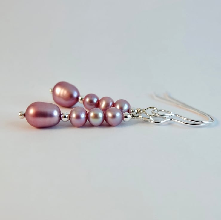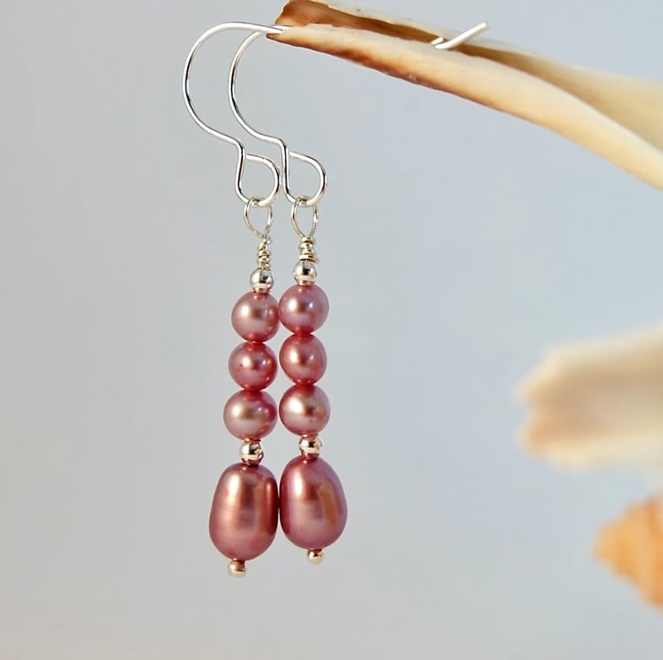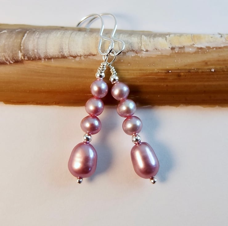 Pink and mauve Freshwater Pearl drop earrings.