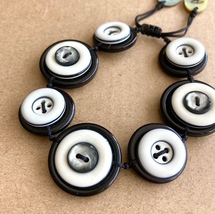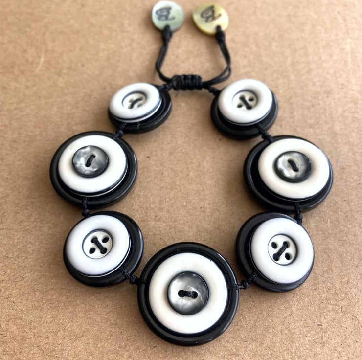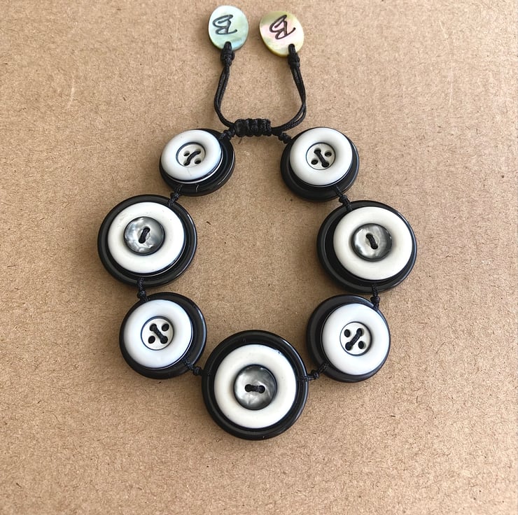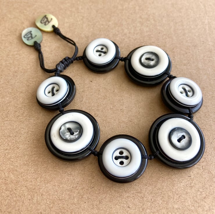 Black and White Colour Theme - Vintage Button Adjustable Handmade Bracelet - unique gift - vintage buttons