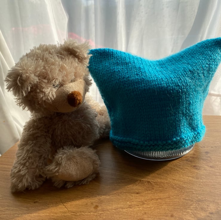 Hand knitted using soft acrylic yarn, this little hat is perfect for a wee boy or girl and makes an ideal gift.