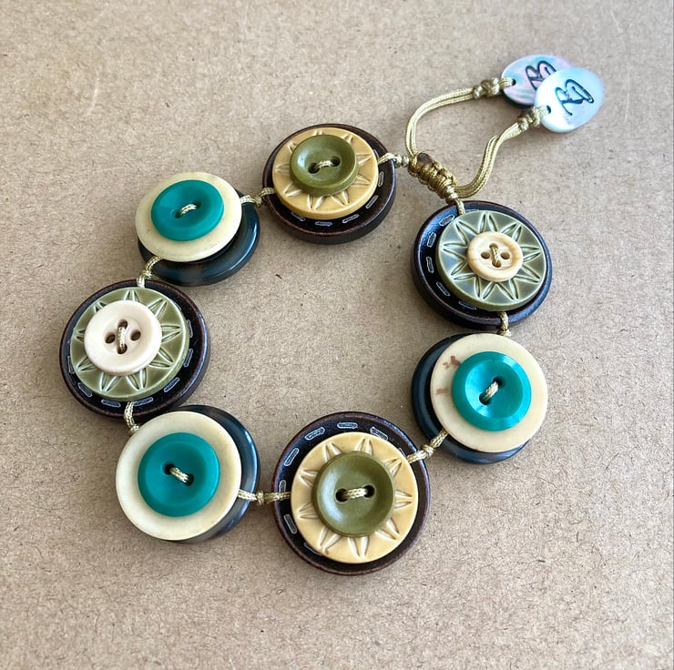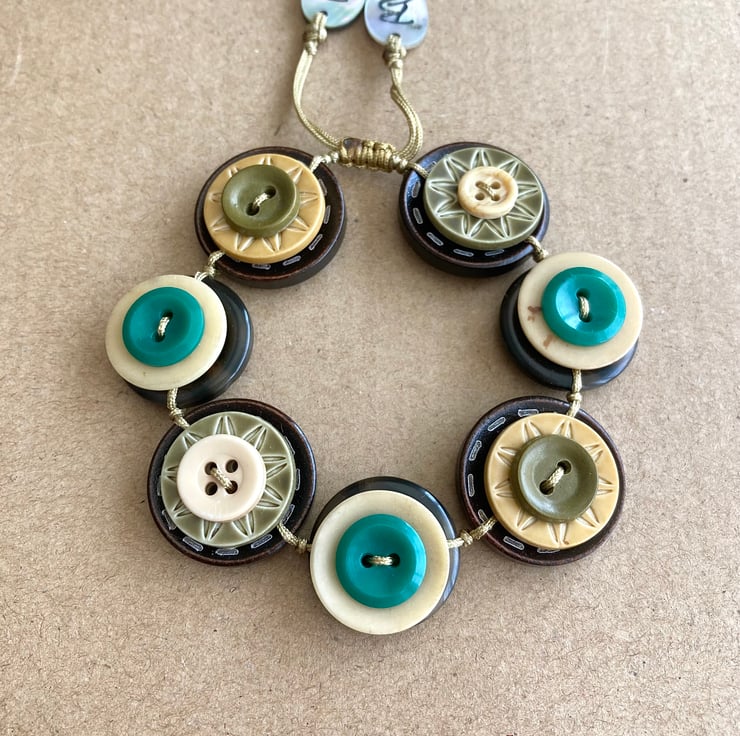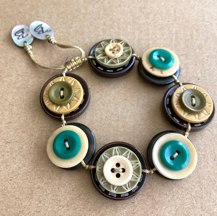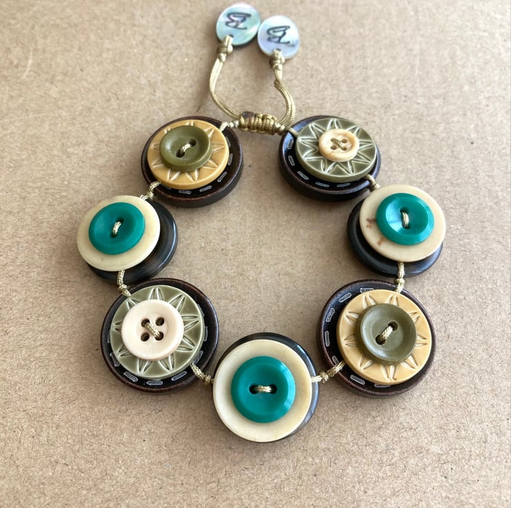 Autumn Leaf Colour Palette - Vintage Button Adjustable Handmade Bracelet
