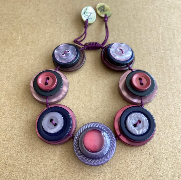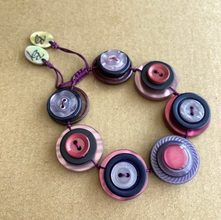 Purple Grapes Colour Story Vintage Button Handmade Adjustable Bracelet