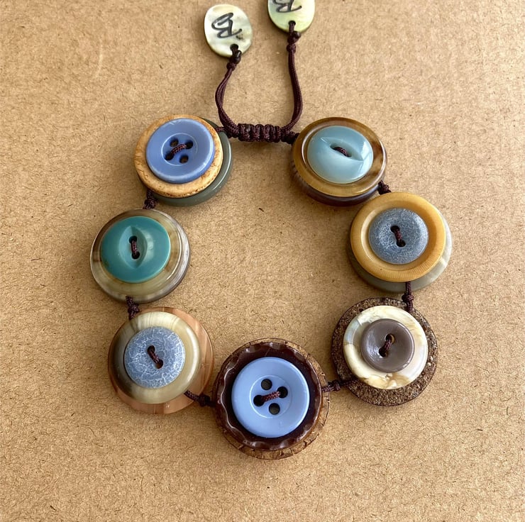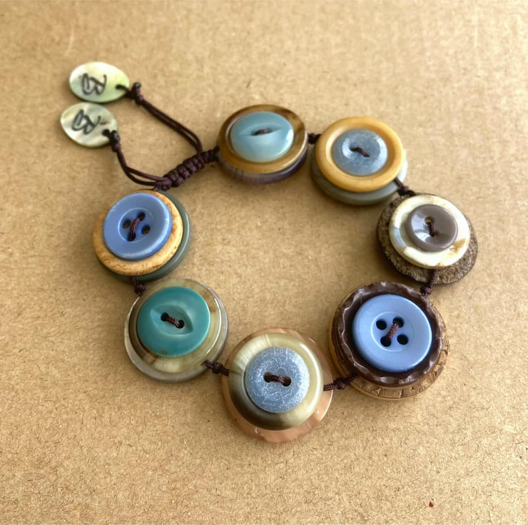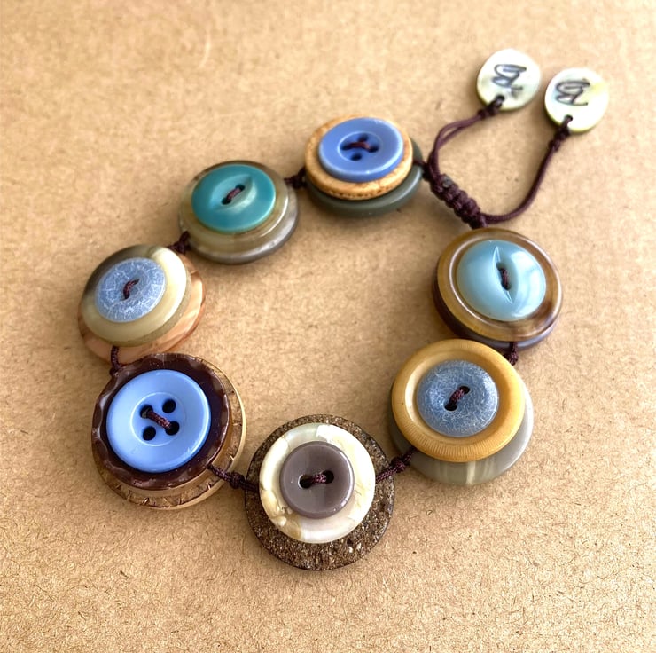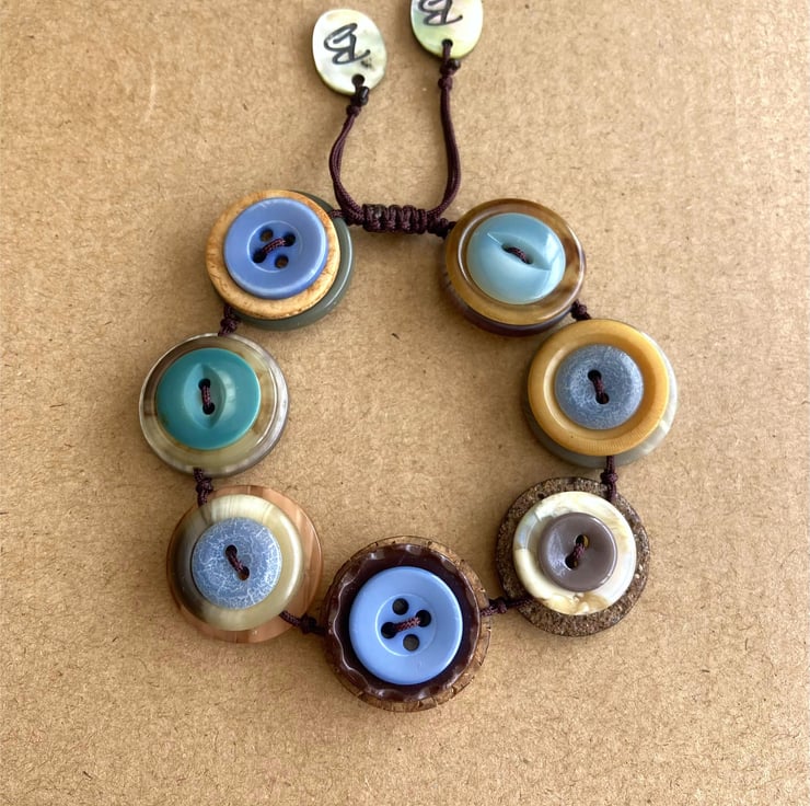 Blue And Mustard Colour Palette - Vintage Button Adjustable Handmade Bracelet