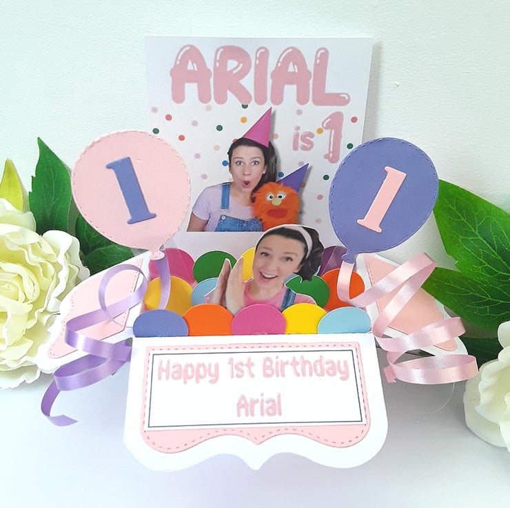 Personalised Ms Rachel Pop Up Card Box, Personalised Ms Rachel Centrepiece (ANY AGE)