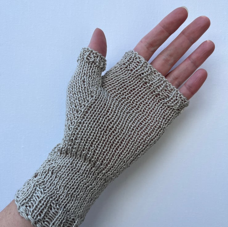 Approximate width of gloves 7.5cm (3") when laid flat.