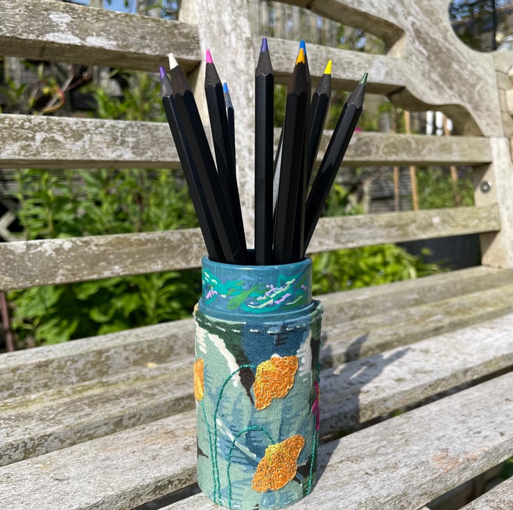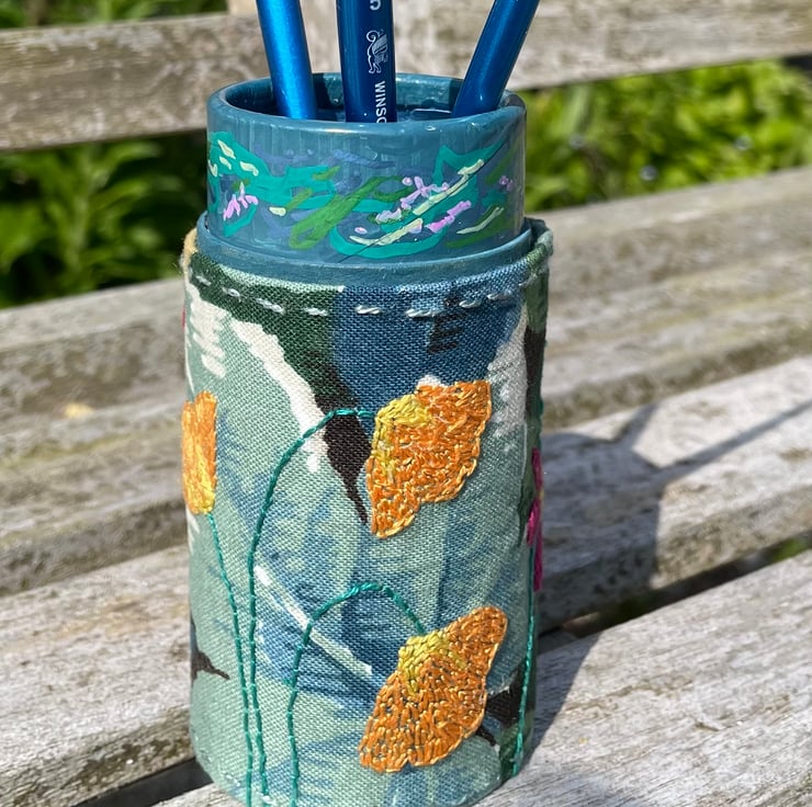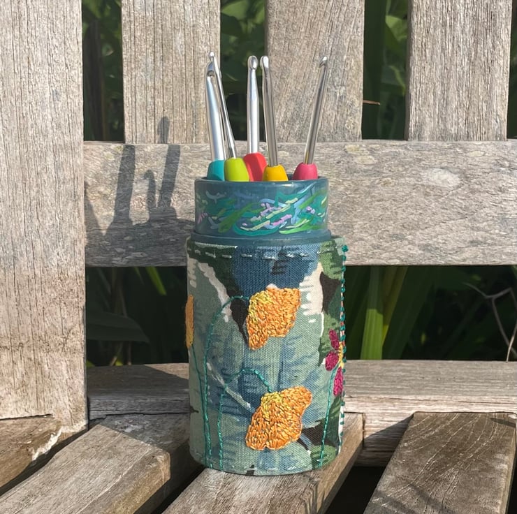 The pot makes a perfect container for brushes, pencils, crochet hooks etc. and even a posy of artificial flowers. Perfect for keeping a work table tidy, or just as something pretty on a shelf.