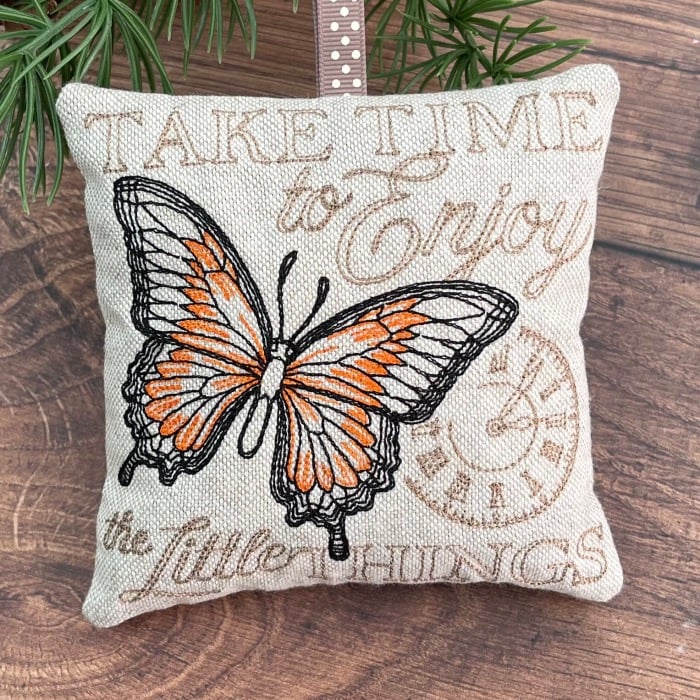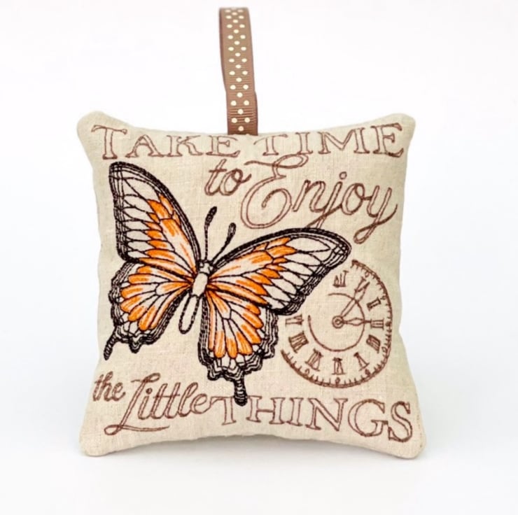 Spread Happiness with this cheerful lavender bag and share the beauty of nature along with some Inspirational Quotes. This beautiful Machine Embroidered ORANGE BUTTERFLY with wording of “TAKE TIME TO ENJOY THE LITTLE THINGS” would make an ideal gift for Birthdays, Anniversaries, Mothers day, Thank You or Just because.
